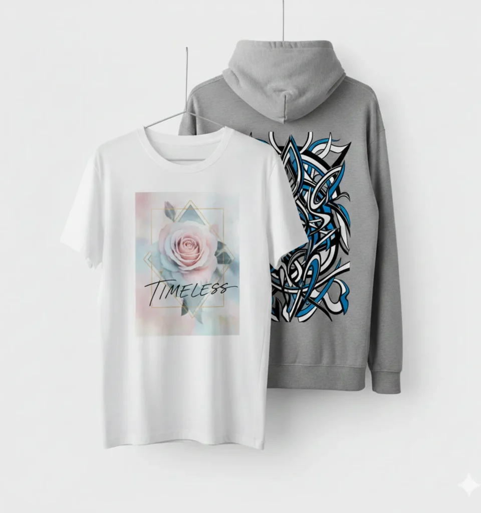 Cualquier Tela y Color: Estampamos sobre algodón, poliéster, jeans, sudaderas negras, rojas, blancas… ¡lo que tú elijas!