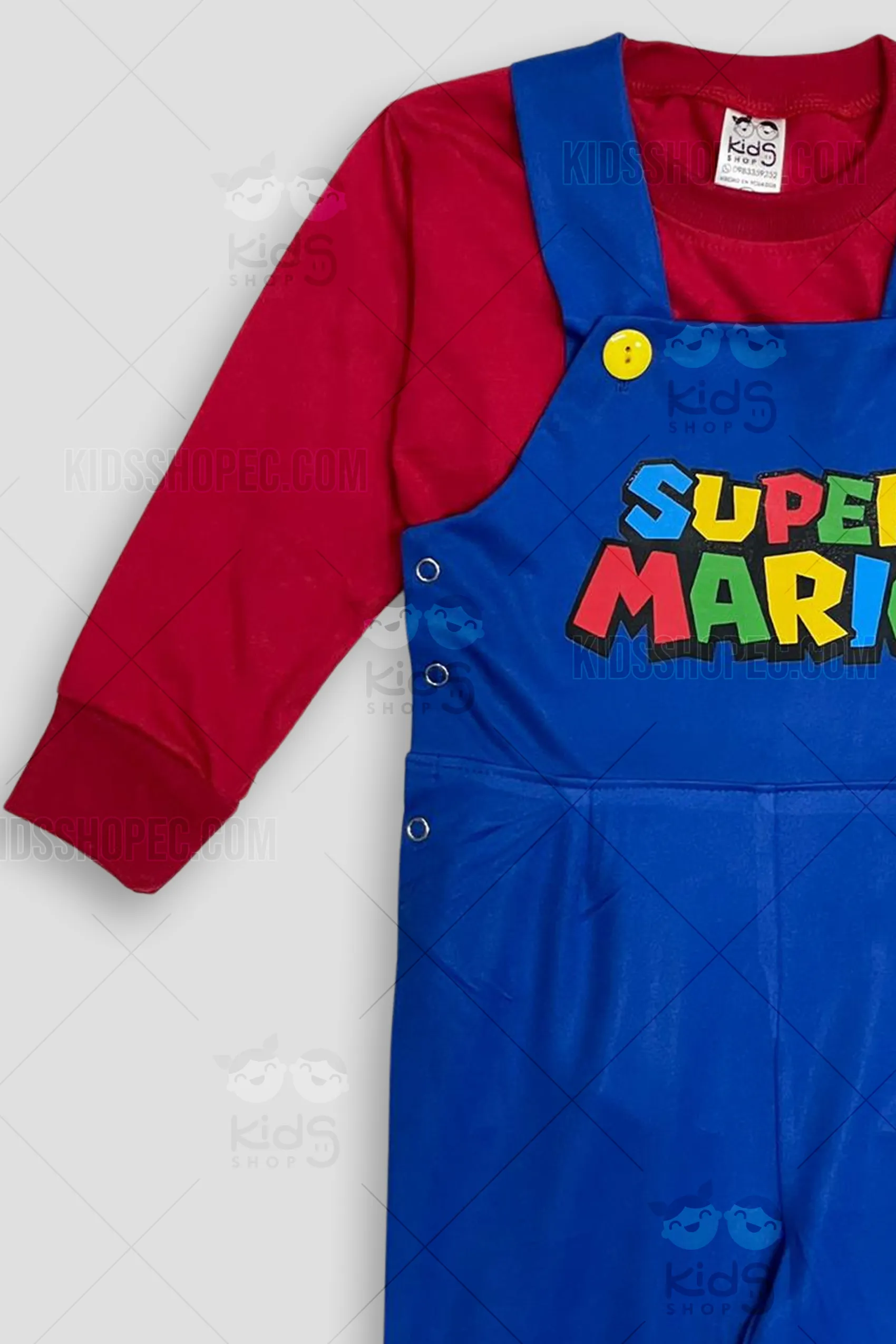 ¡Estilo icónico y confort en una sola mudada de superhéroe! Presentamos nuestro exclusivo Traje de Mario Bros para Bebé, una pieza fundamental para quienes buscan un estilo tierno, vibrante y moderno en el día más especial de su hijo. Este conjunto destaca por su impecable diseño sublimado de alta definición que recrea la armadura clásica amarilla y azul con una impresionante definición de músculos impresos y un cinturón detallado. La jardinera azul presenta una textura acolchada de alta calidad con las icónicas manchas moradas y un detallado bordado del rostro de "Gatito". El gorrito de punto con cuernos ofrece un ajuste ergonómico que garantiza total libertad de movimiento para gatear, jugar y explorar sin límites, ideal para sesiones fotográficas temáticas o celebraciones memorables.
