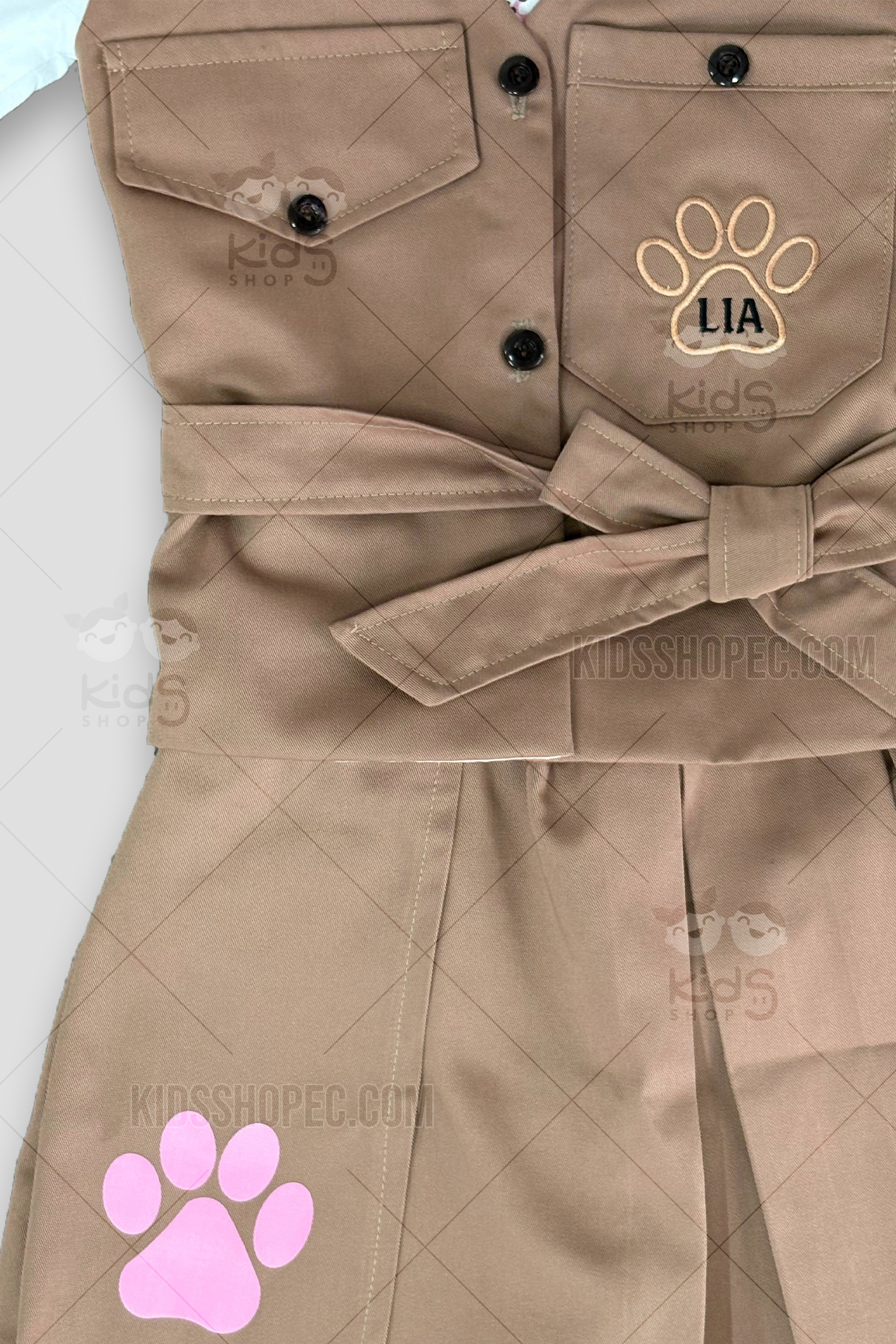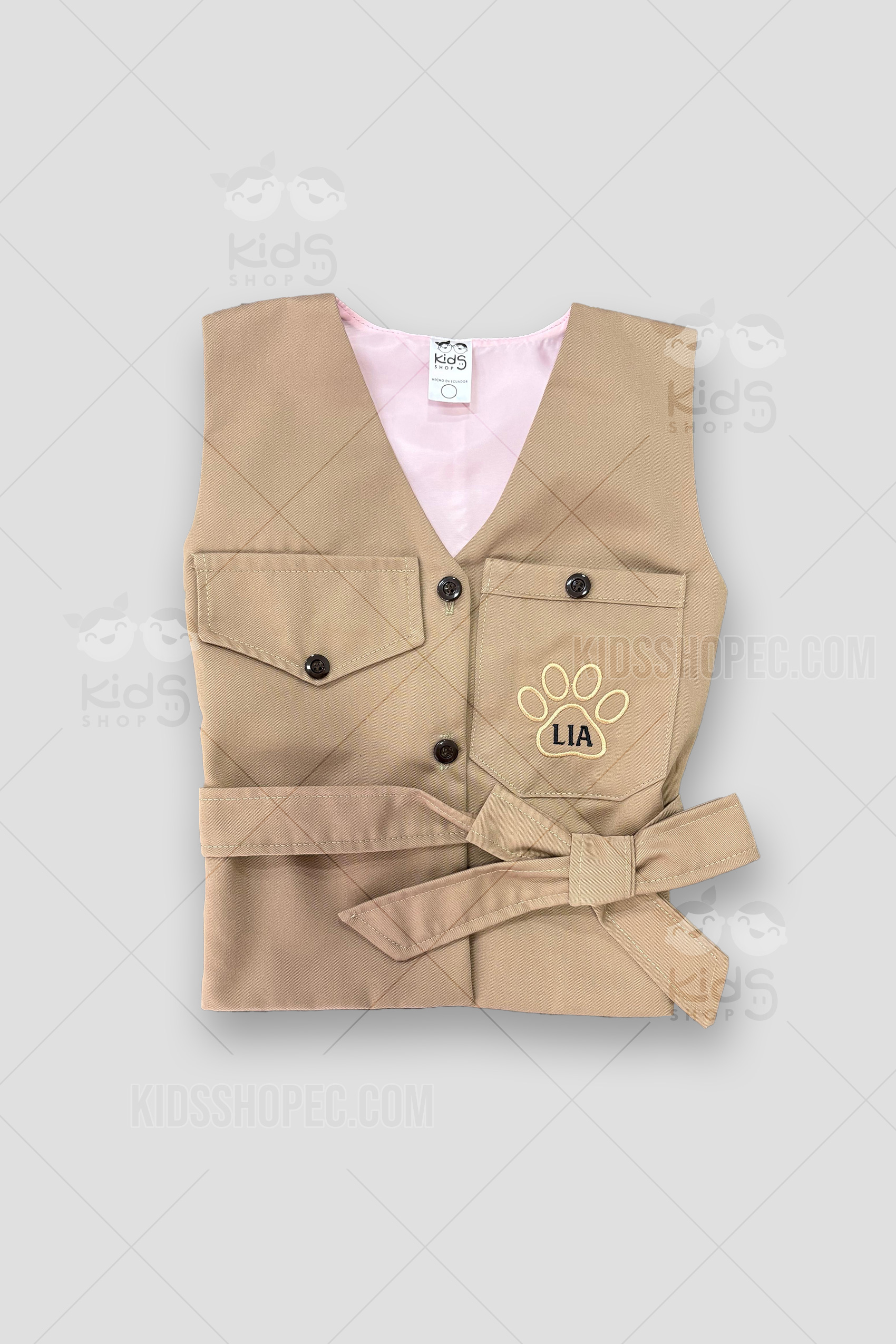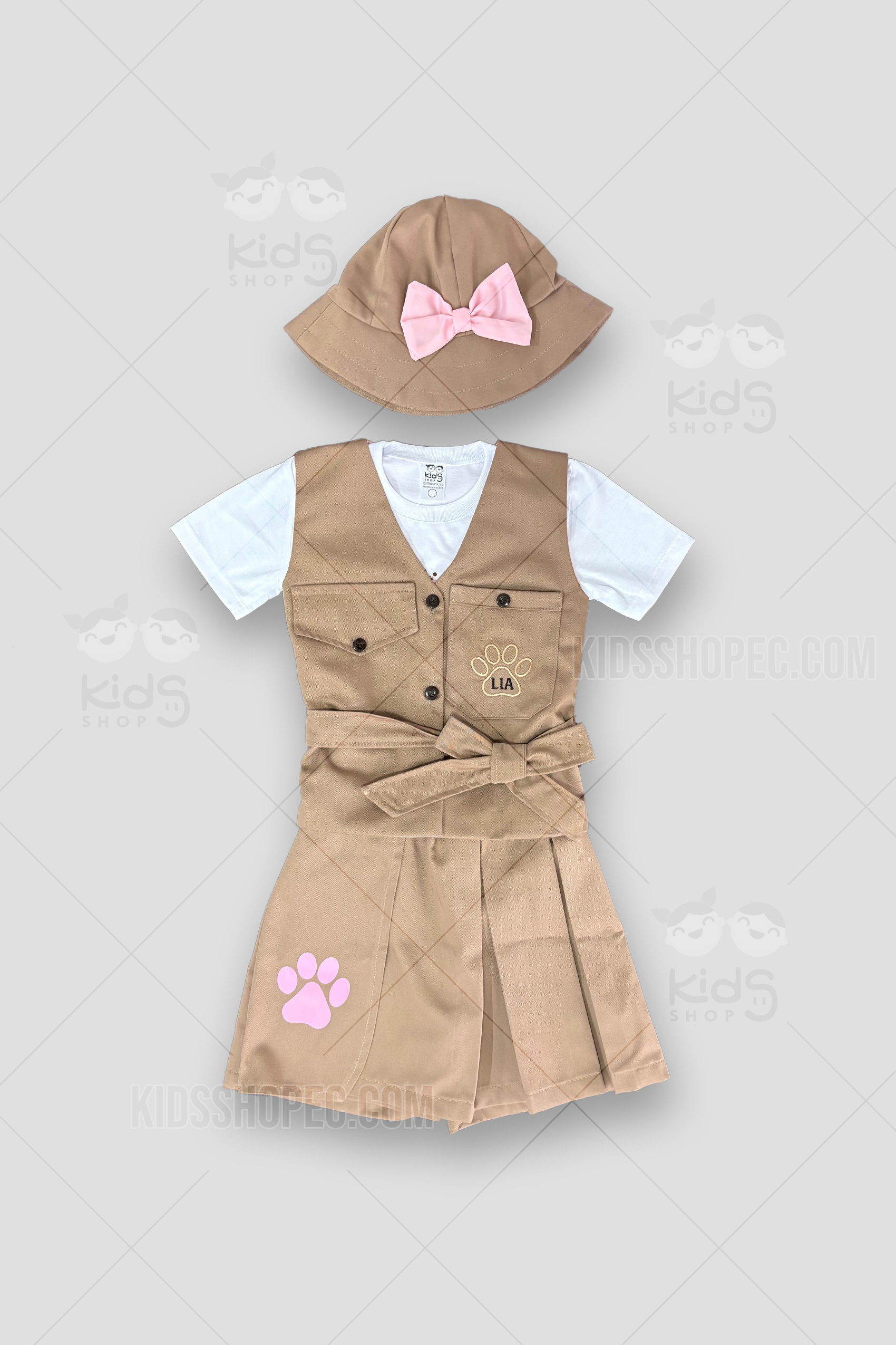 Prepara a tu pequeña para una emocionante expedición a la selva con este adorable disfraz de exploradora con temática de jirafa. Ideal para fiestas de disfraces, Halloween, eventos escolares, cumpleaños con tema de animales o simplemente para jugar en casa. El conjunto incluye un conjunto de chaleco, camiseta con estampado de jirafa, gorro y una falda skort con un divertido estampado de huella de animal. Confeccionado con materiales cómodos y duraderos para horas de exploración.