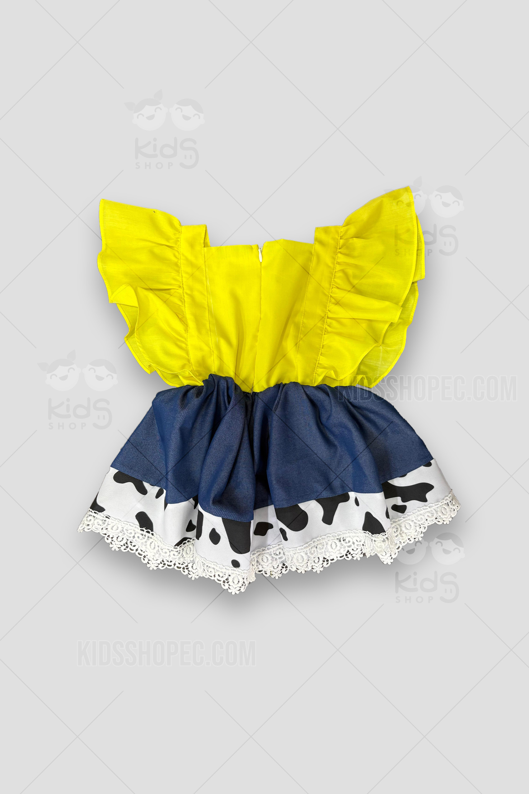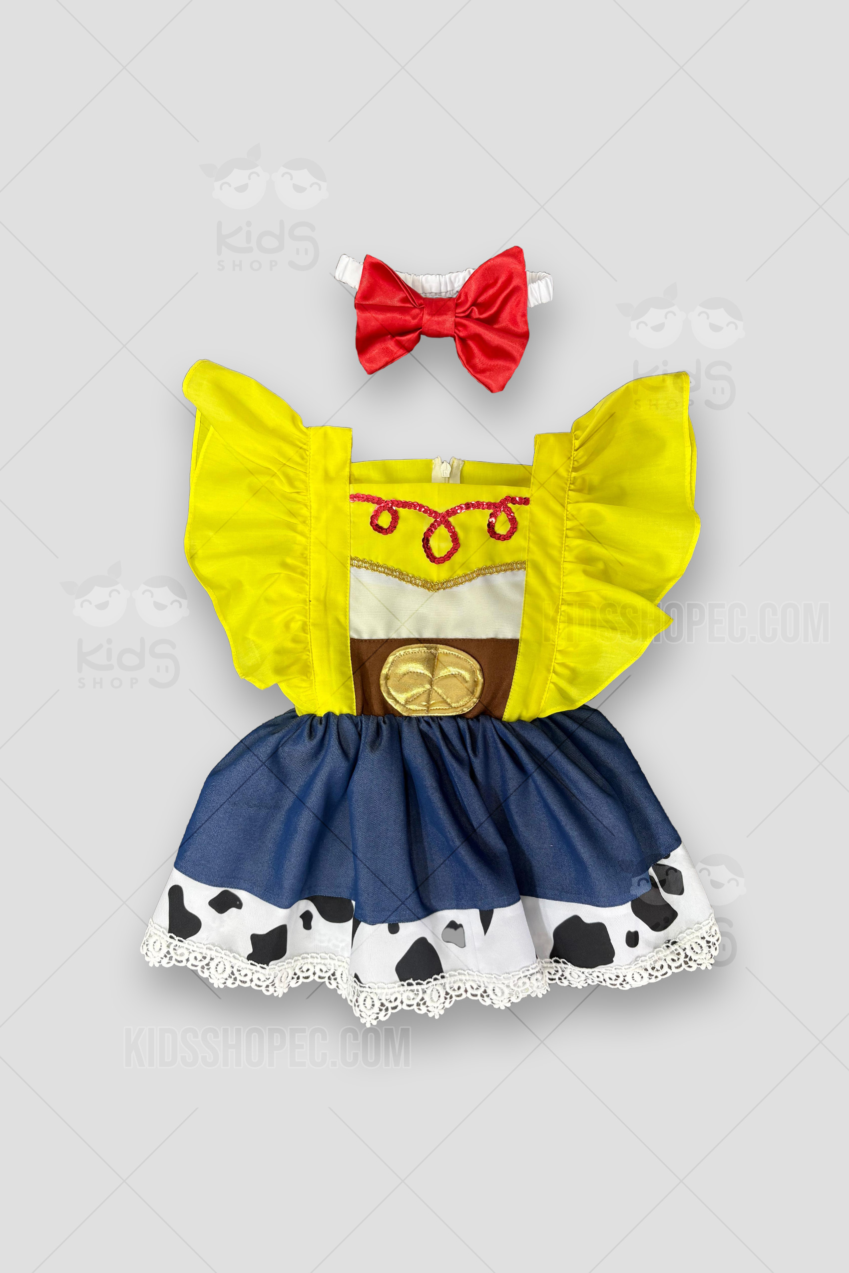Prepara a tu pequeña para conquistar el Viejo Oeste con este encantador y completo disfraz de vaquera. Ideal para fiestas de disfraces, Halloween, eventos temáticos del Lejano Oeste o juegos de rol. El conjunto presenta un vibrante vestido de una sola pieza con una parte superior lentejuelas rojas y una falda acampanada tela tipo jean con un acabado de encaje. Incluye un chaleco marrón con detalles de flecos que añade un toque auténtico, y se cintillo de vaquera a juego, un cinturón con hebilla de estrella. Confeccionado con materiales cómodos y resistentes para horas de diversión.