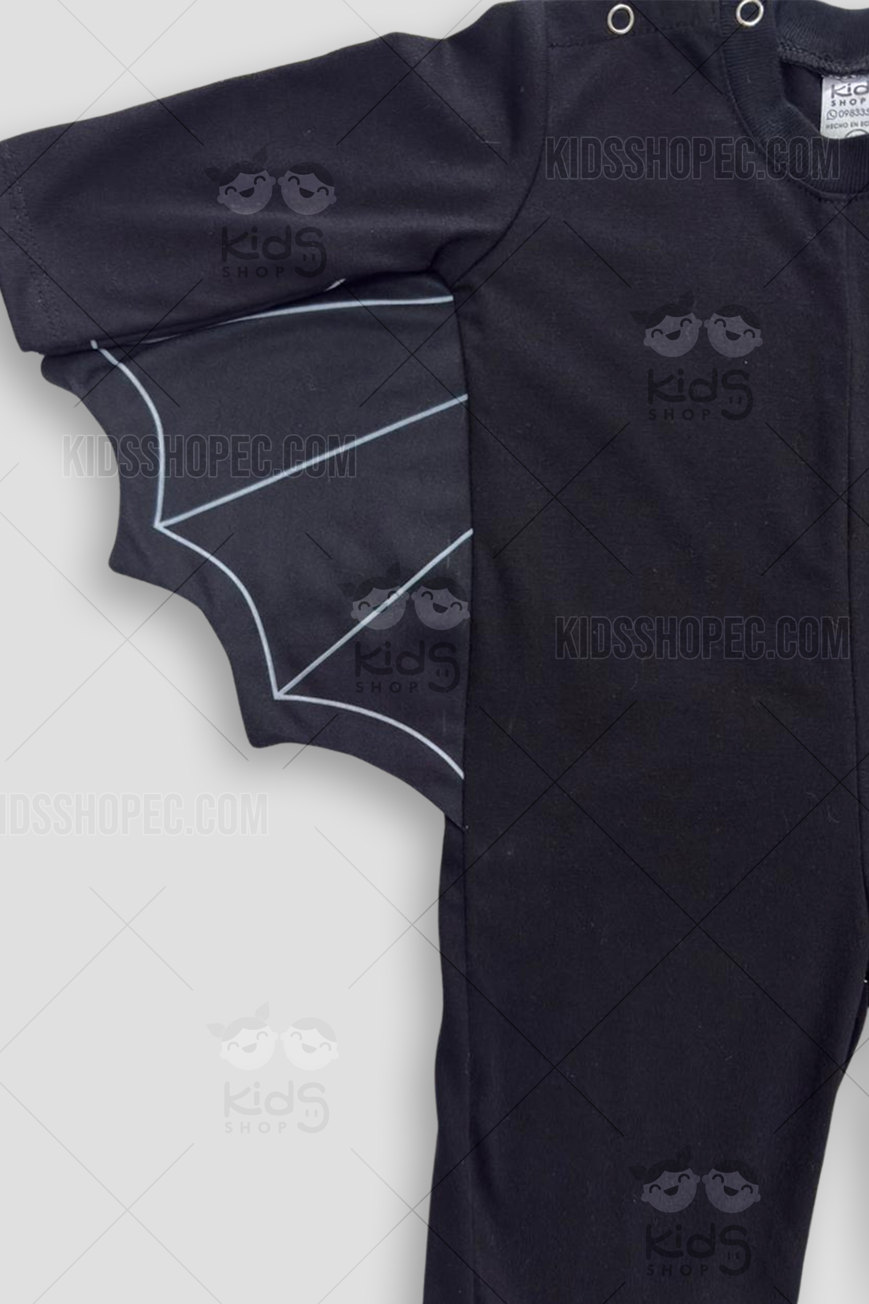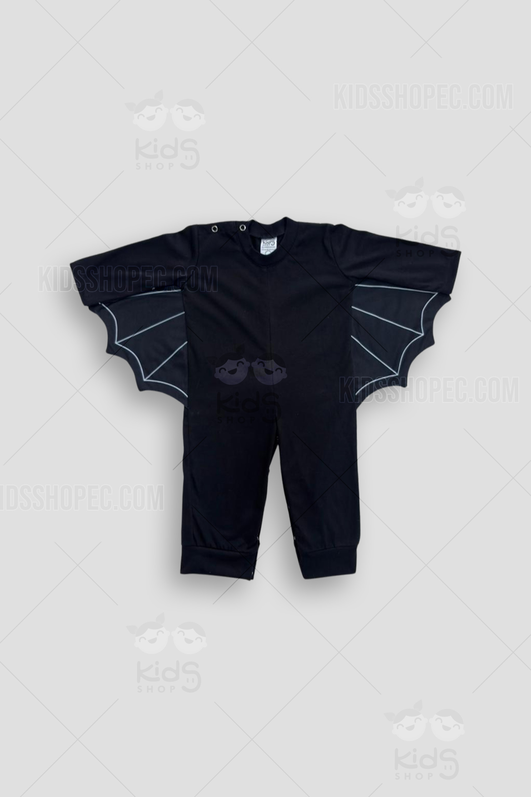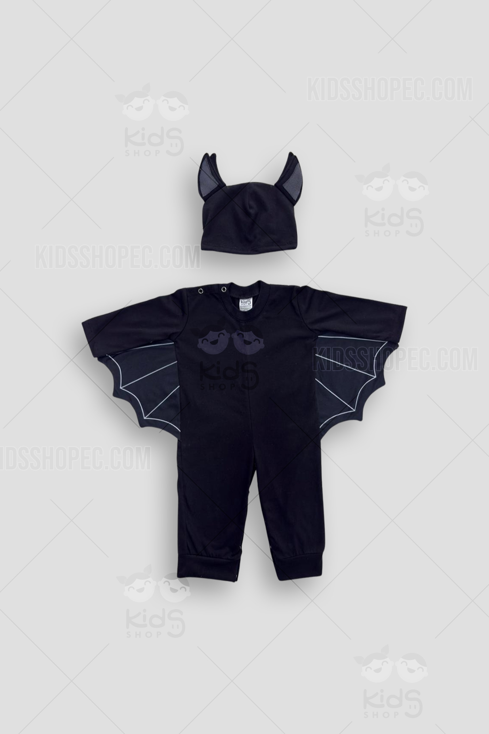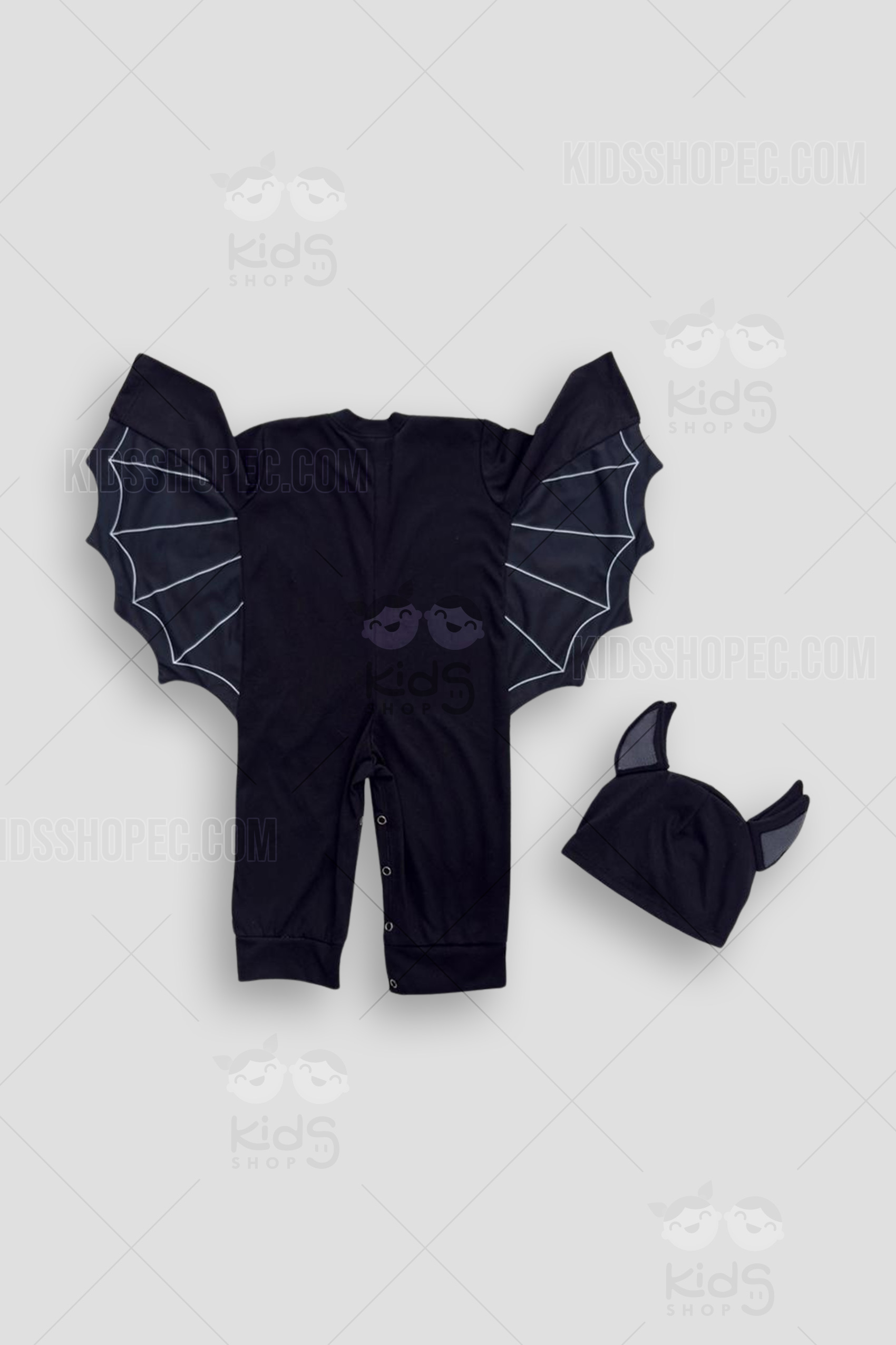 Este es un adorable y divertido body/traje de disfraz diseñado para bebés y niños pequeños, perfecto para Halloween o fiestas temáticas. Confeccionado en tela suave y cálida, este enterizo presenta un diseño de Murciélago con un cuerpo en color negro y un vientre en color naranja brillante para un contraste festivo. Lo más distintivo son las grandes alas de murciélago cosidas en la espalda y el gorro con grandes orejas que le da el toque final al personaje. Con un cierre o botones a presión, es cómodo para cambiar el pañal y mantener al bebé abrigado mientras se ve irresistiblemente temático.