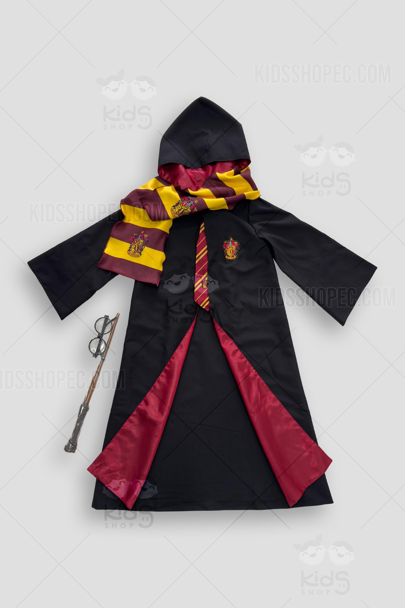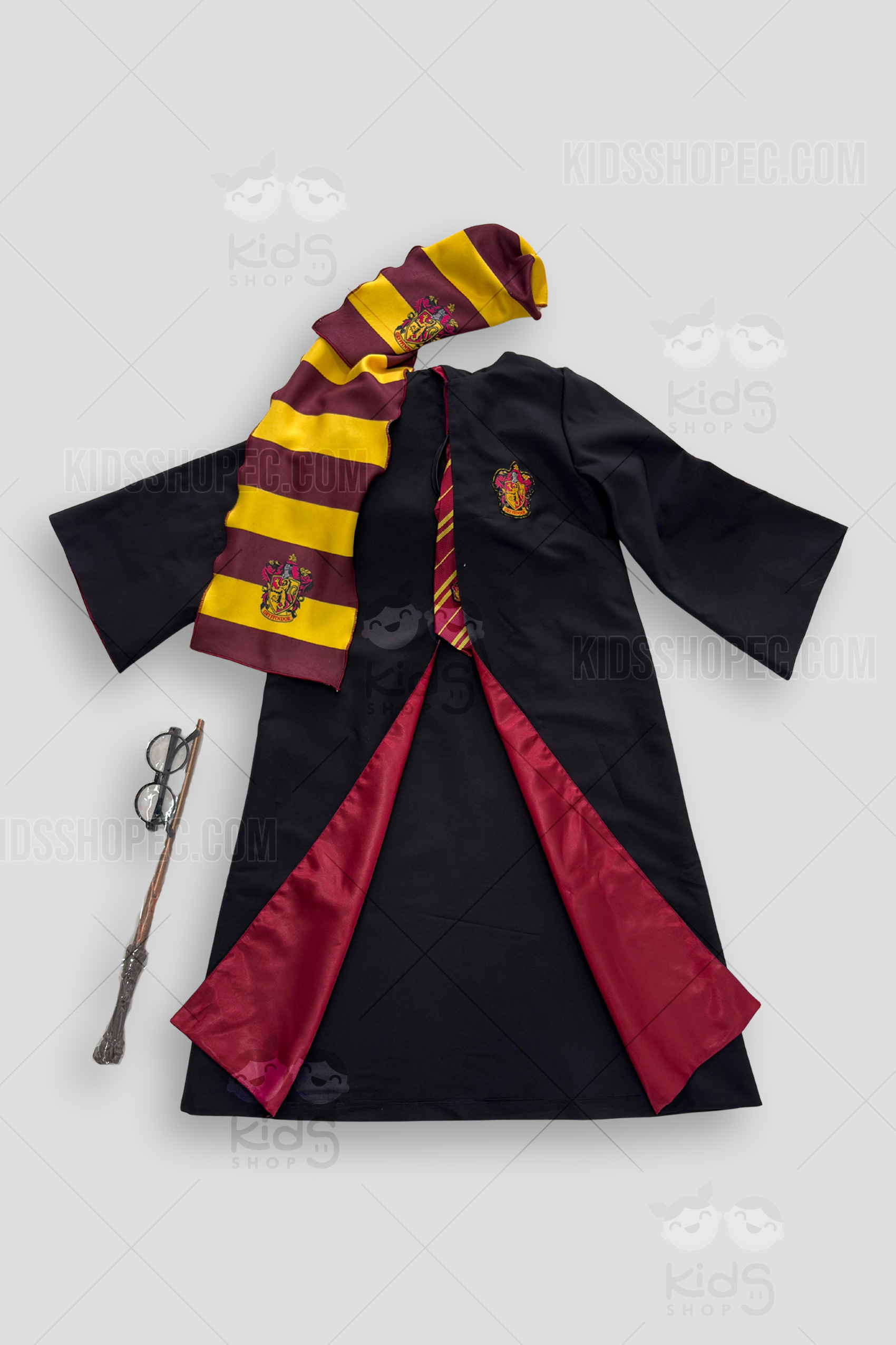 ¡Tu pequeño mago está listo para subirse al Expreso de Hogwarts con nuestro Disfraz de Mago "Gryffindor Valiente"! Este es el traje de Harry Potter para niño más completo, un set mágico de 5 piezas para sentirse parte de la casa más valiente. Incluye la icónica túnica de Hogwarts negra con capucha, forro interior de satén color vino y el escudo de Gryffindor bordado en el pecho. Y para que no falte ningún detalle, viene con todos los accesorios: la bufanda a rayas, la corbata con elástico (¡fácil de poner!), las inconfundibles gafas redondas y su propia varita mágica para lanzar hechizos. Es el disfraz de mago perfecto para Halloween, fiestas temáticas o para jugar a "Wingardium Leviosa" en casa.