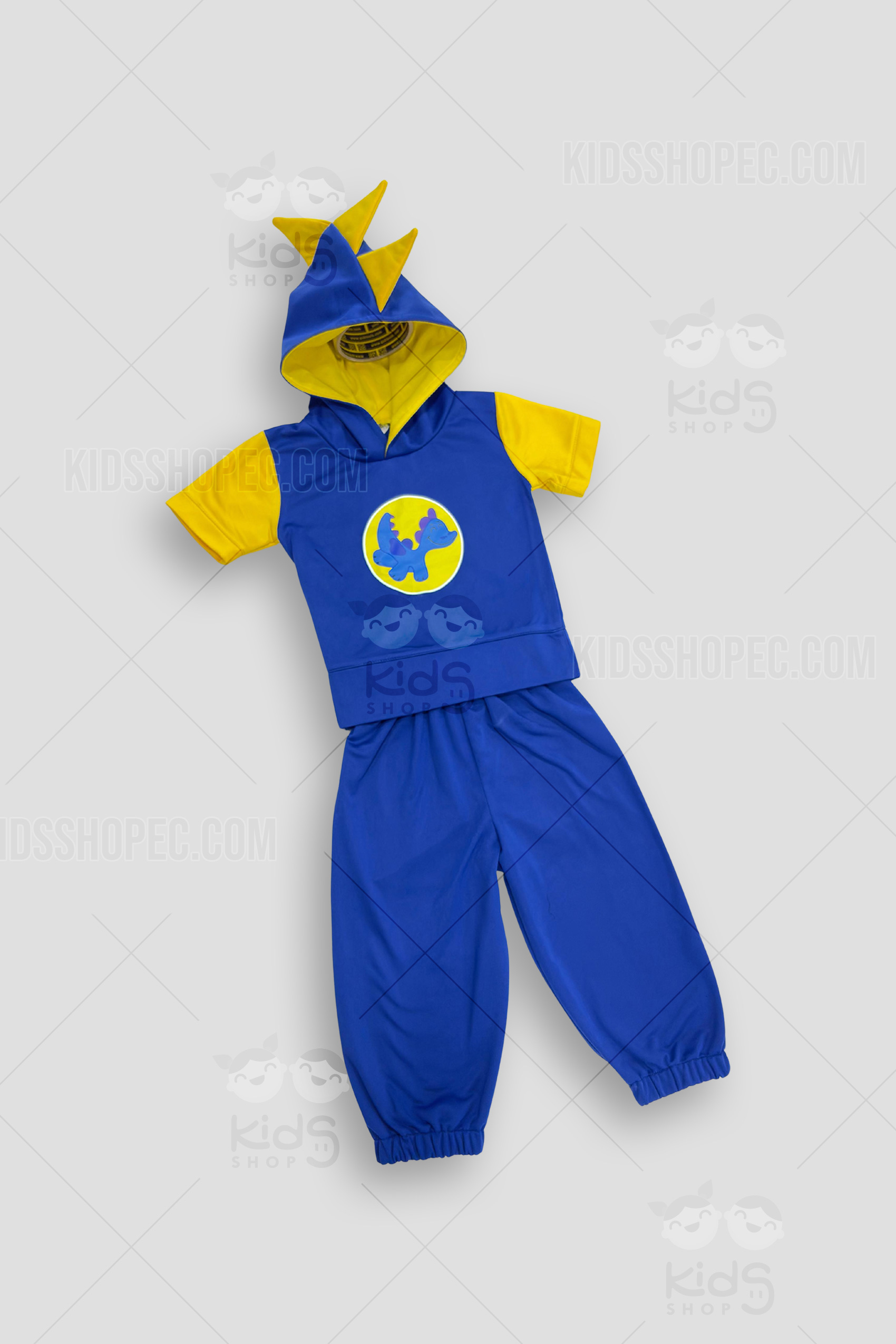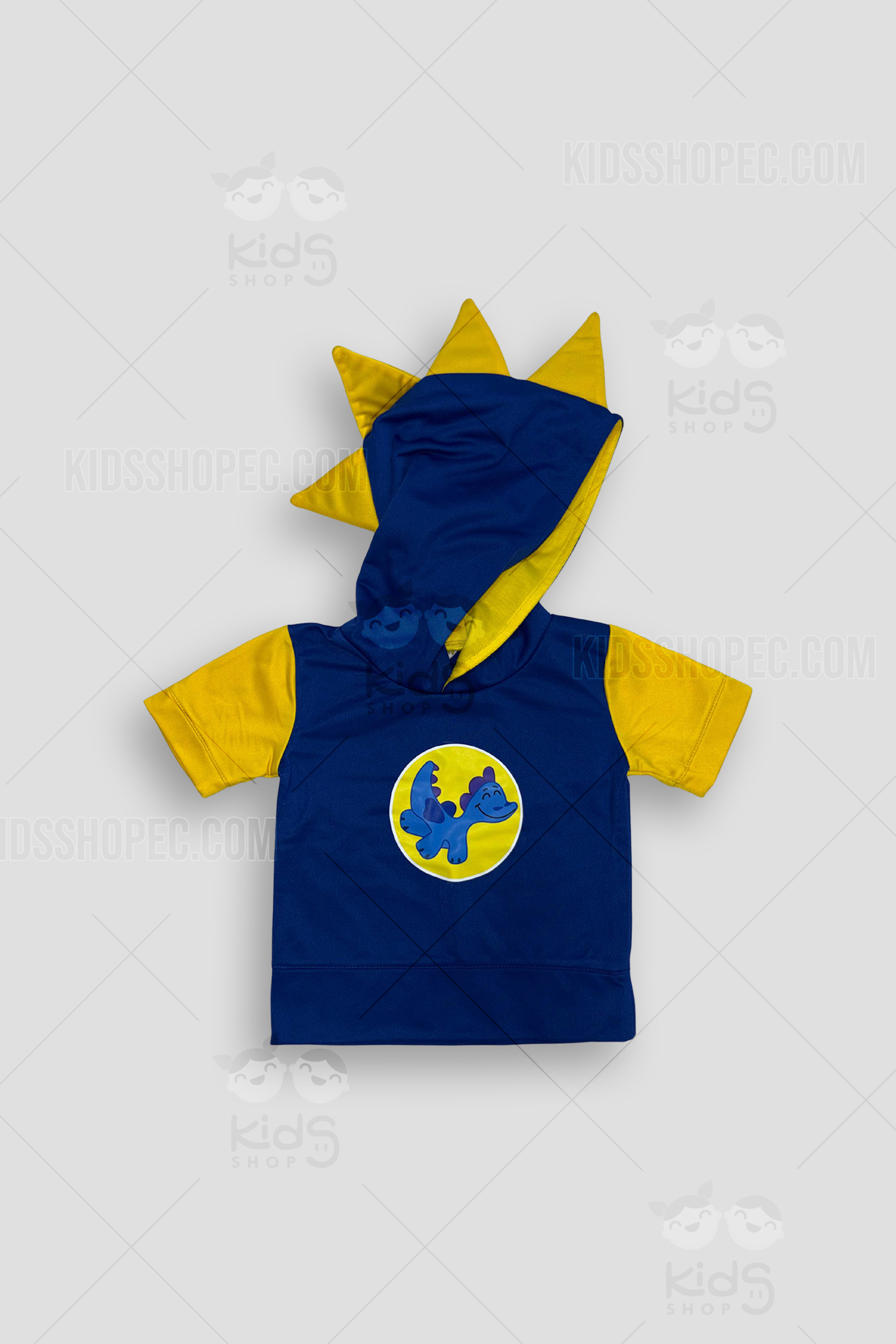 ¡Prepara el rugido más tierno! Tu pequeño explorador está listo para una aventura prehistórica con nuestro Disfraz "Dino-Aventura". Este traje de dinosaurio para niño es un conjunto de 2 piezas súper cómodo en vibrantes colores azul rey y amarillo. La estrella del show es la sudadera (hoodie) de manga corta, que tiene una increíble capucha con cresta de dinosaurio y un parche de un amigable amigo prehistórico en el pecho. Acompañado de un pantalón azul tipo jogger, este disfraz de dinosaurio es perfecto para fiestas, Halloween o para transformar cualquier día en una cómoda expedición jurásica.