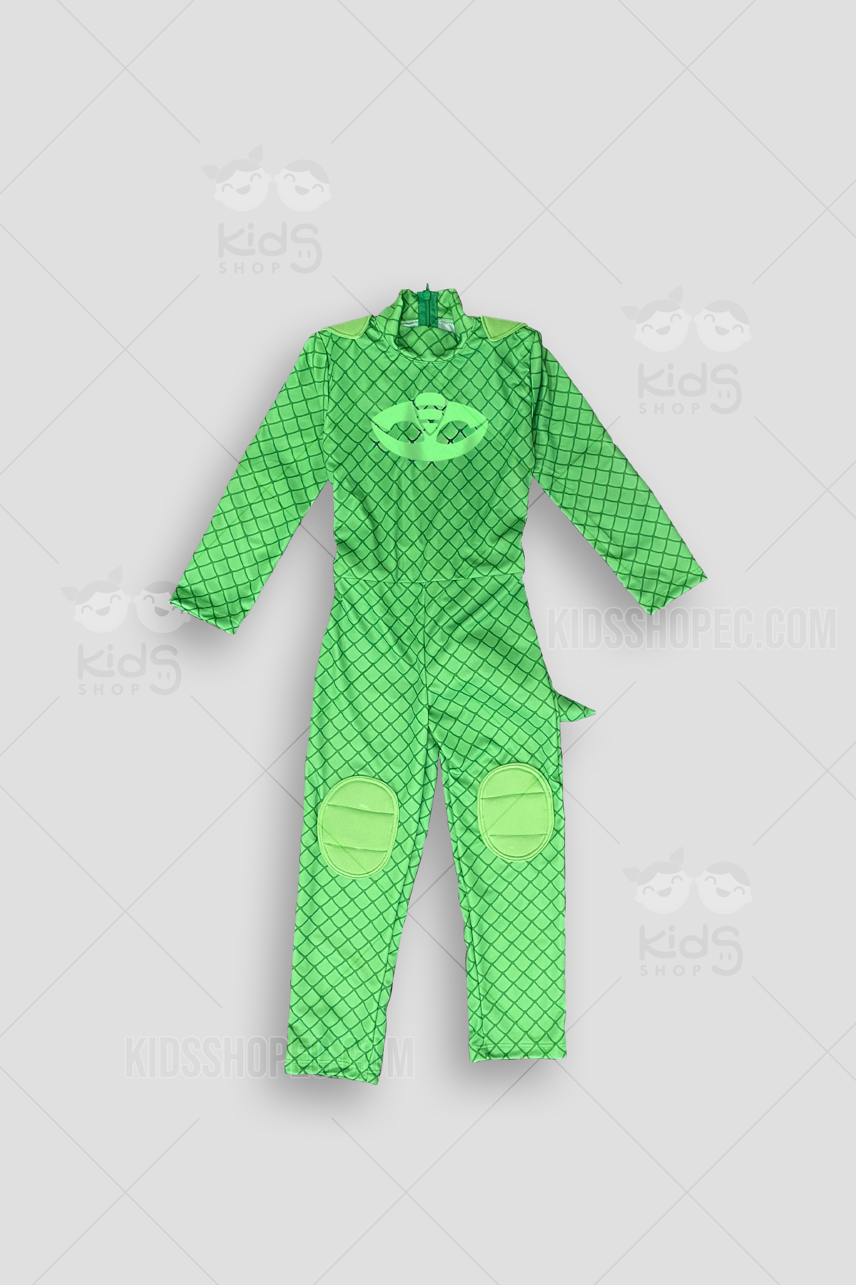 Prepara a tus pequeños a convertirse en los valientes héroes de la noche con este fantástico disfraz de Gekko, de los populares Héroes en Pijama. Ideal para fiestas de cumpleaños temáticas, Halloween, juegos de rol de superhéroes, eventos de disfraces o para revivir las emocionantes misiones en el cuartel general. El disfraz de Gekko es un mono de cuerpo completo en un vibrante verde claro con el logo de un lagarto y detalles de cola, que simboliza su super fuerza y camuflaje. El disfraz incluye máscaras de tela que cubren el rostro, permitiendo a los niños mantener su identidad secreta. Confeccionado con materiales cómodos y elásticos para que los pequeños superhéroes puedan correr, saltar y escalar sin restricciones.