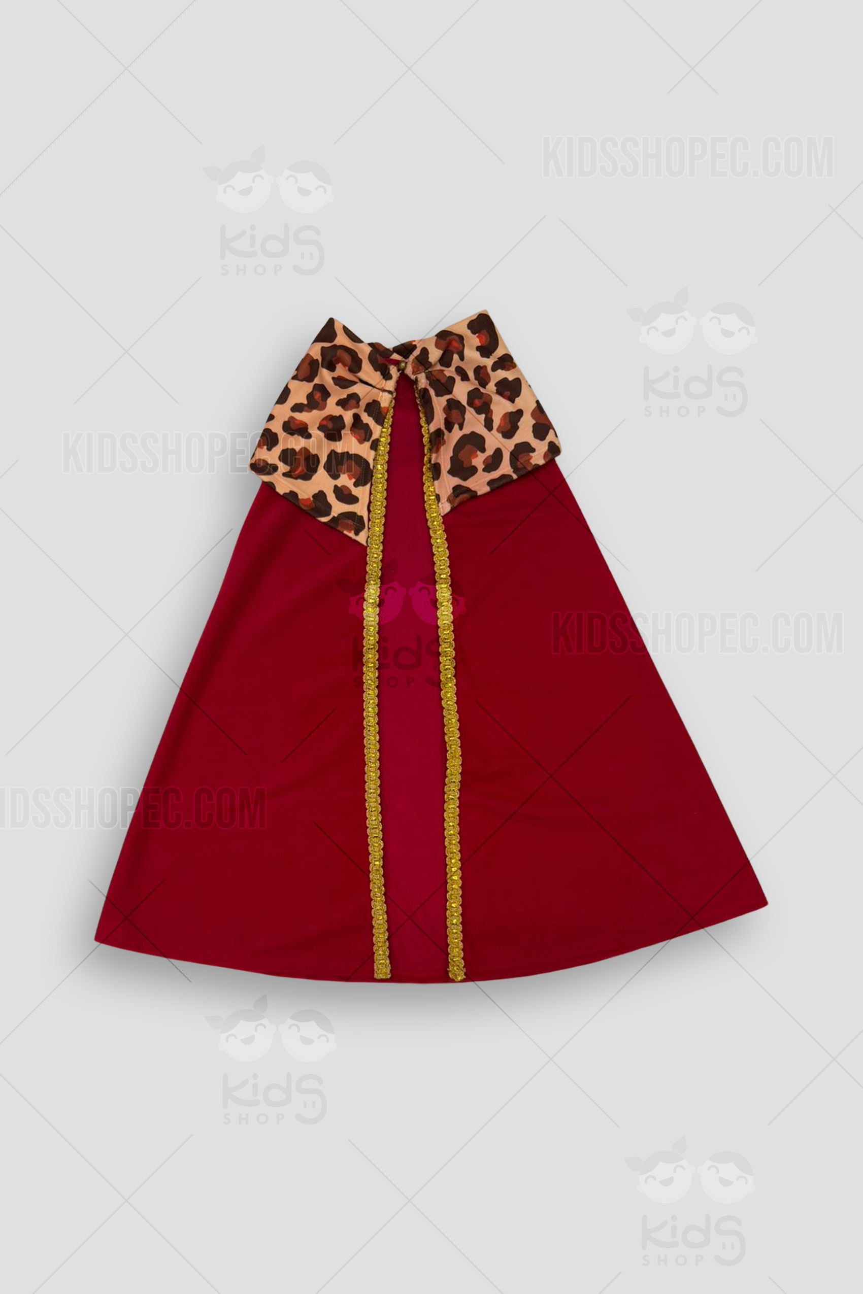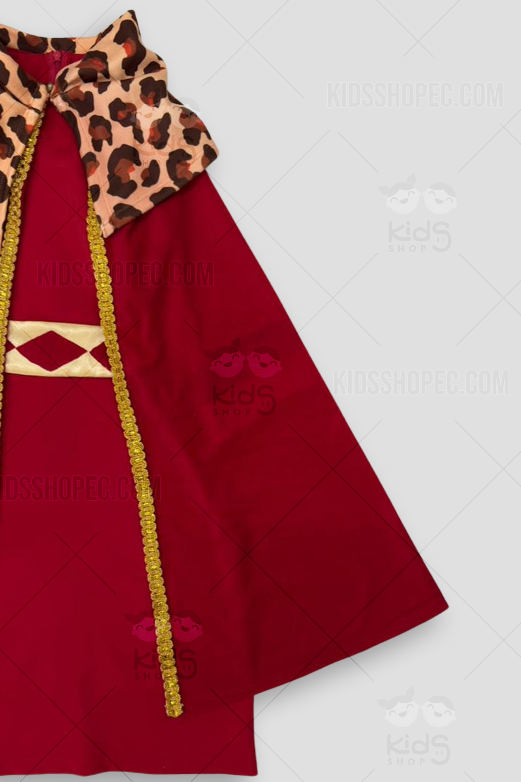 ¡La magia de Oriente llega al pesebre! Este majestuoso Disfraz de Rey Mago Gaspar es el atuendo definitivo para las obras de teatro navideñas, cabalgatas y el Día de Reyes. El conjunto destaca por su elegancia regia: la pieza principal es una túnica larga de color rojo burdeos con un cinturón dorado decorado con rombos y puños a juego en marrón y oro. Lo que realmente eleva el traje es su impresionante capa roja, sujeta por un cuello/hombros con estampado de leopardo y ribetes de pasamanería dorada. ¡Es un set completo! Incluye una corona dorada con joyas de fantasía, una tupida barba castaña postiza y guantes blancos para un look totalmente auténtico.