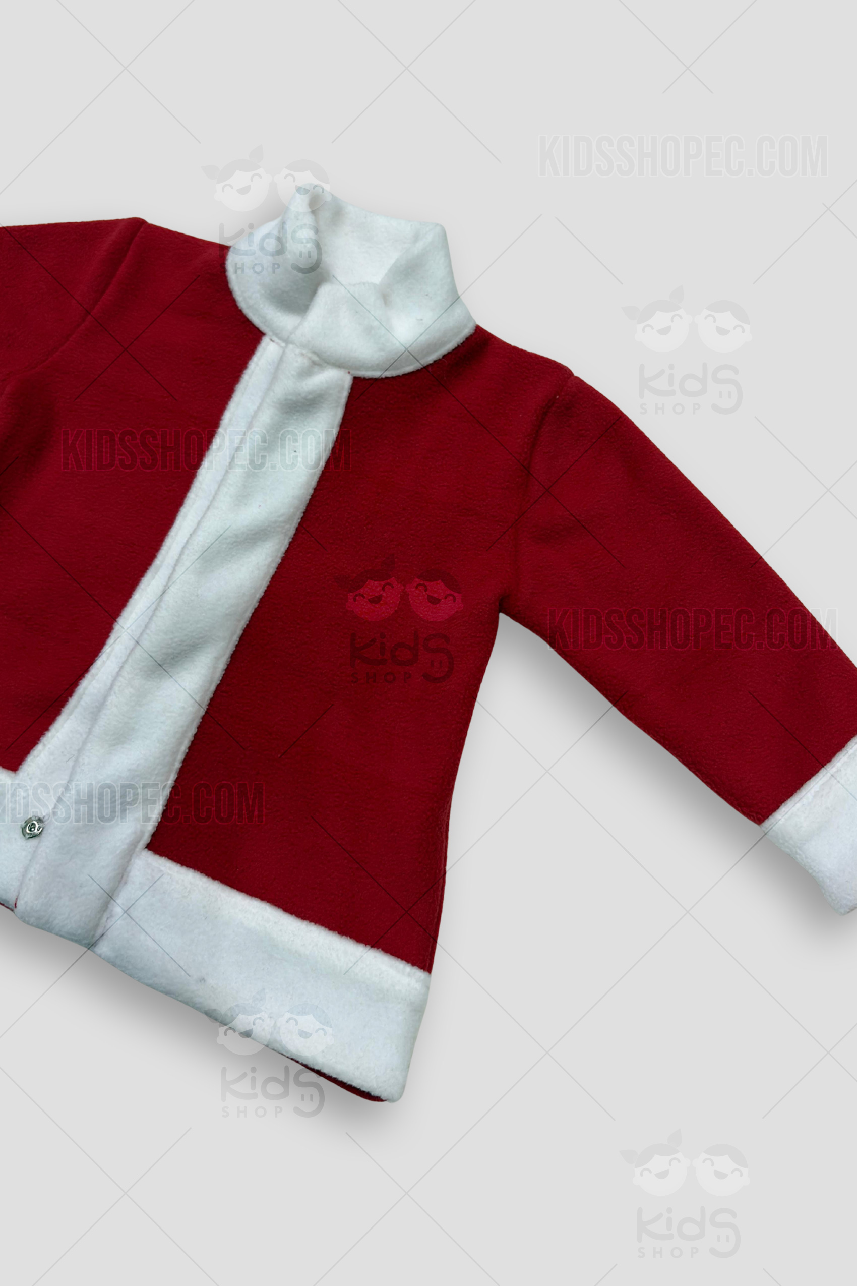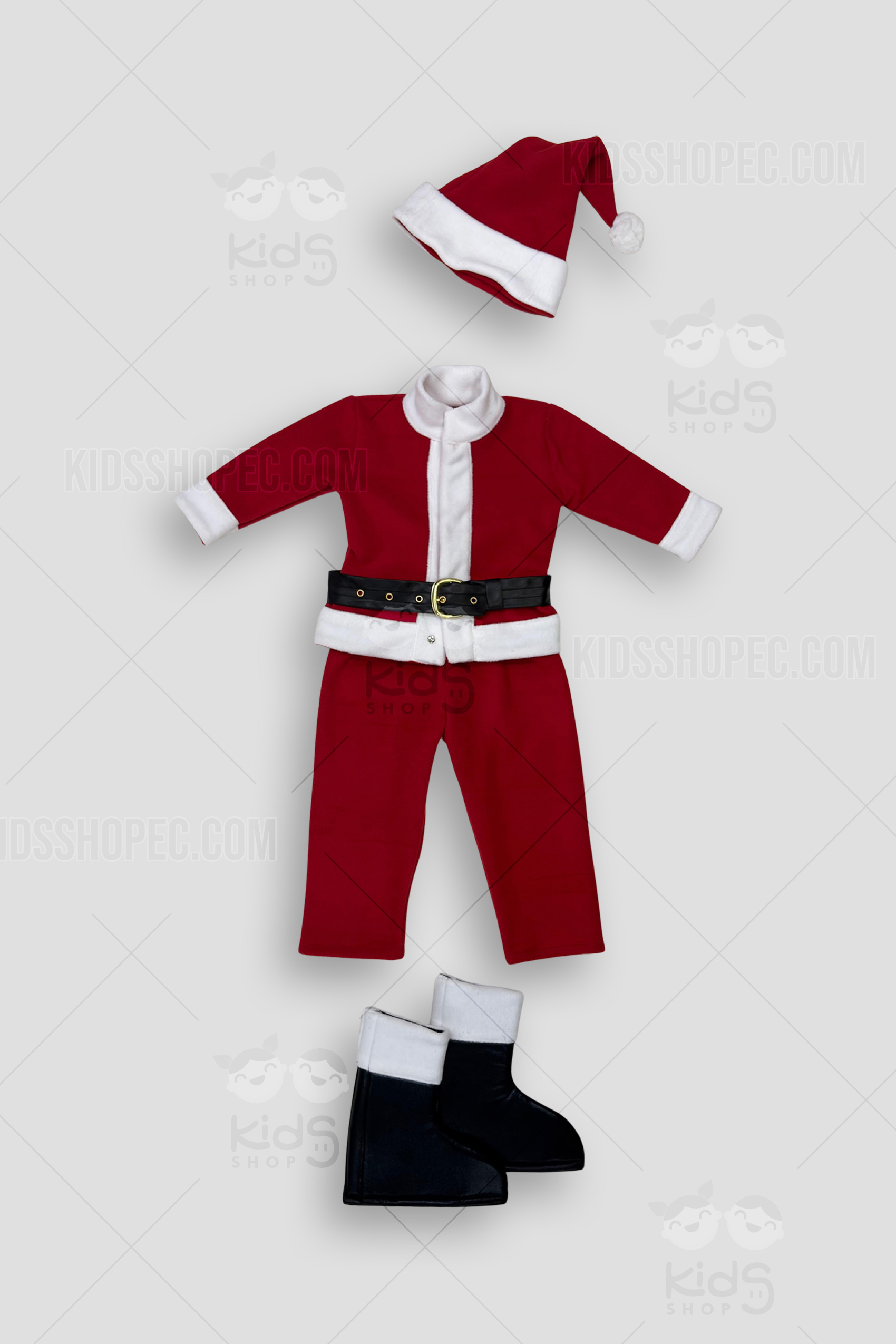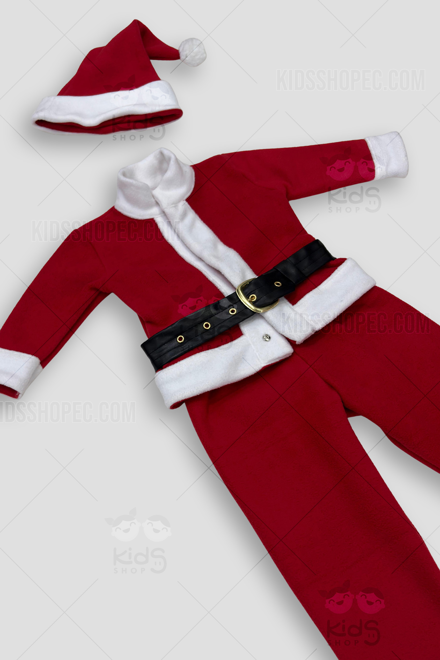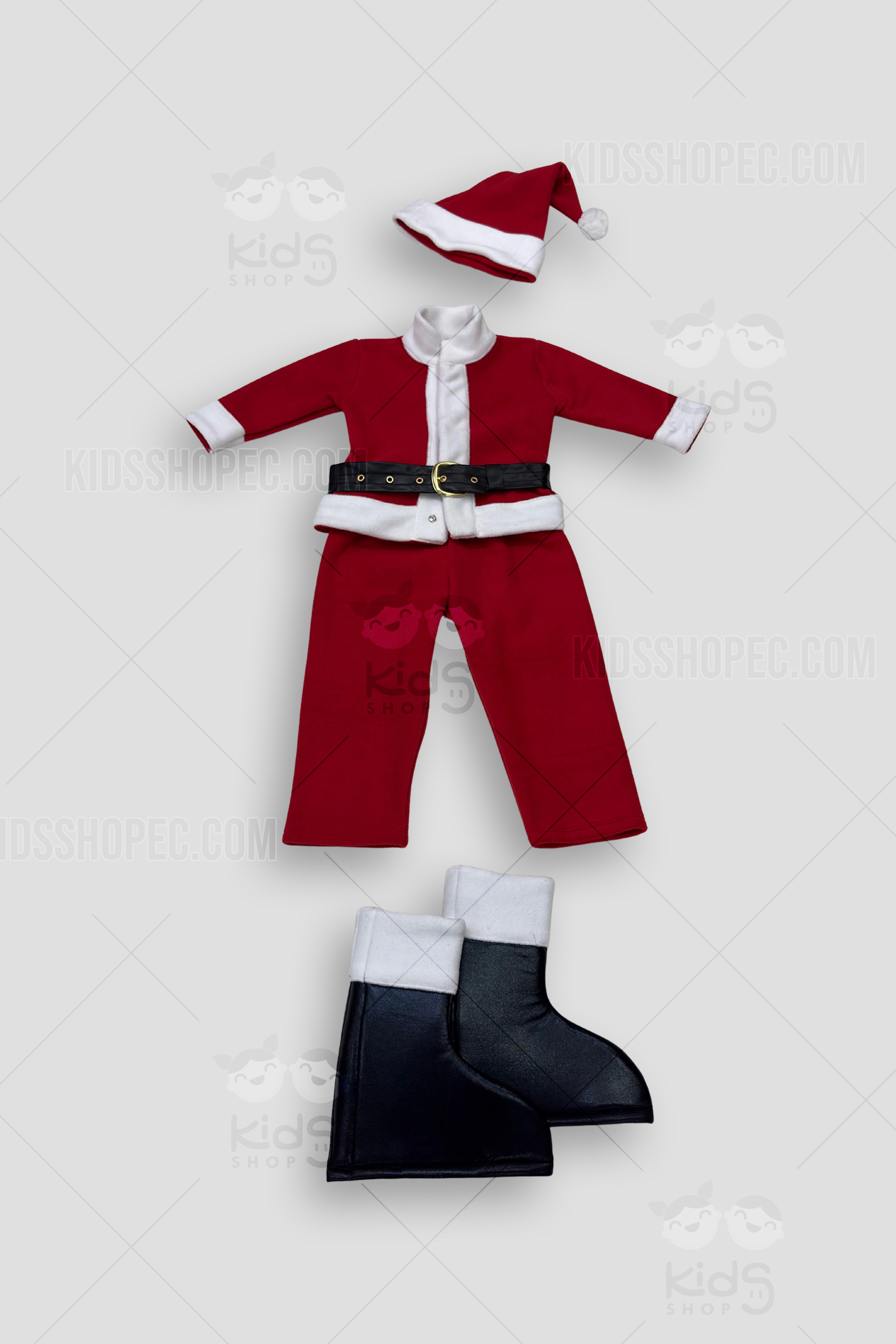 ¡Jo, jo, jo! La Navidad será inolvidable con nuestro Disfraz "Pequeño Santa Claus". Este adorable traje de Papá Noel para niño es un set completo de 5 piezas confeccionado en suave tela tipo polar (fleece), perfecta para mantener a tu pequeño abrigado y cómodo en las fiestas. Incluye la clásica chaqueta roja con ribetes de "piel" blanca y cierre de botones a presión, un pantalón rojo a juego, el icónico gorro navideño con pompón, un cinturón negro con hebilla dorada para ajustar la chaqueta, y unos geniales cubrebotas negros con borde de peluche blanco que transforman cualquier zapato en las botas de Santa. Es el atuendo ideal para la foto familiar de Navidad, la entrega de regalos o las fiestas escolares.