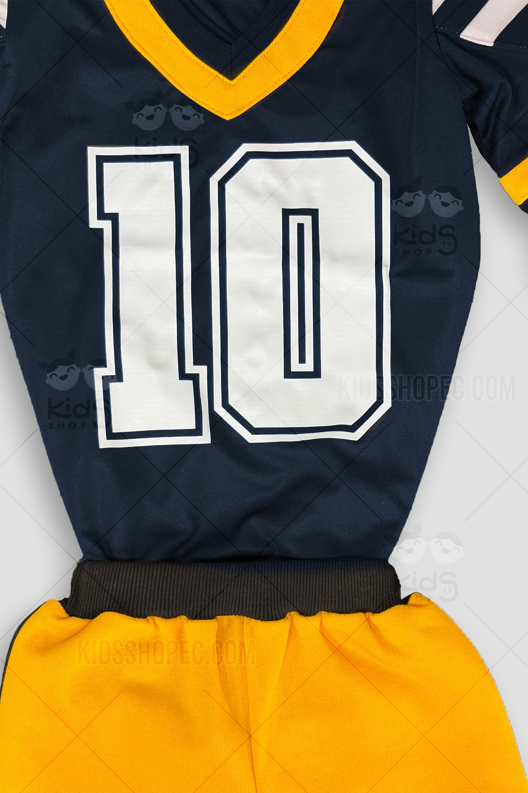 Prepara a tu pequeño para salir al campo y anotar grandes jugadas con este emocionante y auténtico disfraz de jugador de fútbol americano. Ideal para Halloween, fiestas deportivas, eventos temáticos de Super Bowl, juegos de rol o para animar a su equipo favorito. El disfraz consiste en una camiseta acolchada en un vibrante color con números y franjas que simulan el uniforme profesional. Se complementa con un pantalón blanco tipo licra o deportivo que se ajusta cómodamente. El toque esencial para cualquier jugador es el casco de fútbol americano de juguete, con su distintiva rejilla facial (no protector). Algunos modelos pueden incluir hombreras integradas para simular la protección. Confeccionado con materiales ligeros y transpirables para permitir total libertad de movimiento en cada carrera y pase.