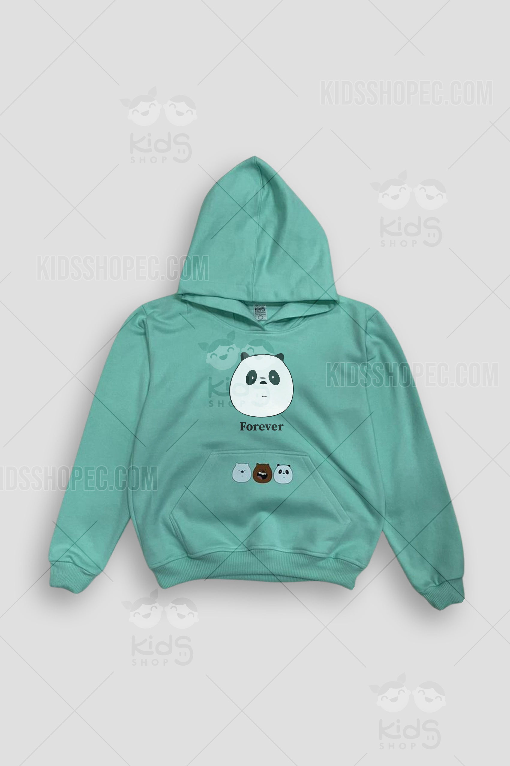 3. Modelo "Forever": Con el rostro adorable de Panda (o Pardo). Todas incluyen el detalle del bolsillo canguro con los tres ositos asomándose y pueden personalizarse en la espalda con el nombre de cada amigo. ¡Es el outfit definitivo para su "squad"!
